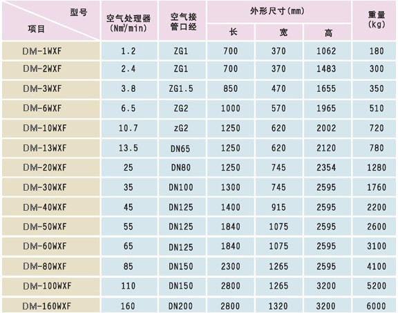 ◆ 無(wú)熱再生吸附式壓縮空氣干燥機(jī)參數(shù)表: